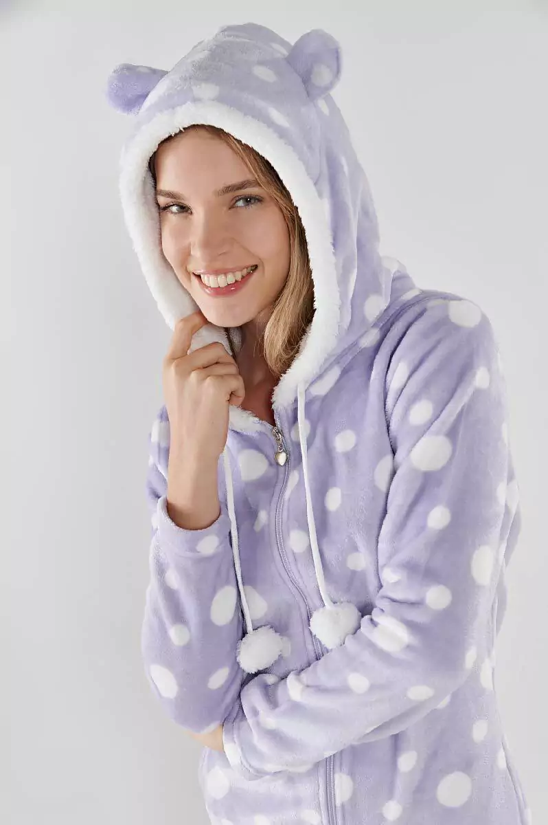 Enterito largo confeccionado en piel sherpa con motivo de lunares.